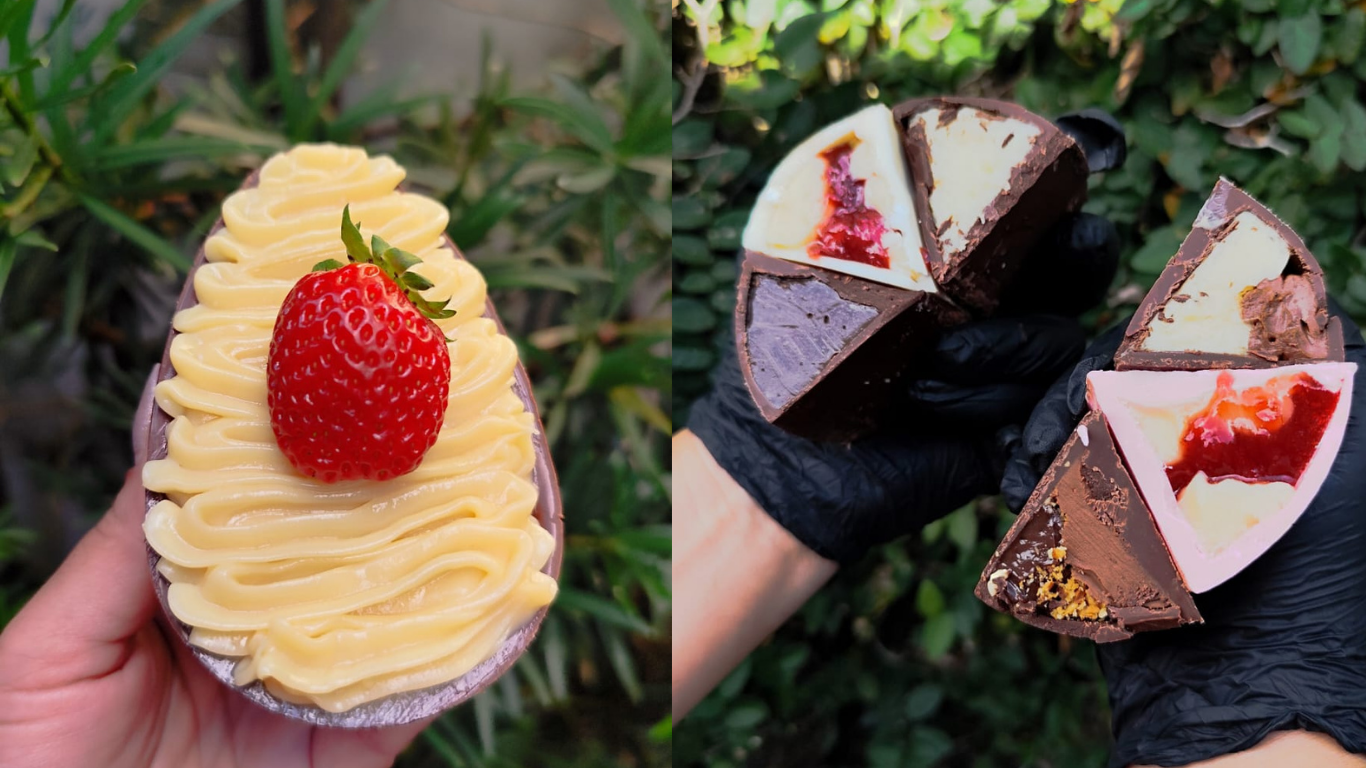 Já a confeiteira Juliana Saraiva, do Ateliê dos Sabores, segue outra linha nesta Páscoa. Apostando nos ovos recheados, ela utiliza as frutas principalmente em forma de geleia, além do morango in natura, combinado com cremes como leite Ninho e brigadeiro. A proposta é equilibrar doçura e acidez, trazendo mais frescor aos recheios.