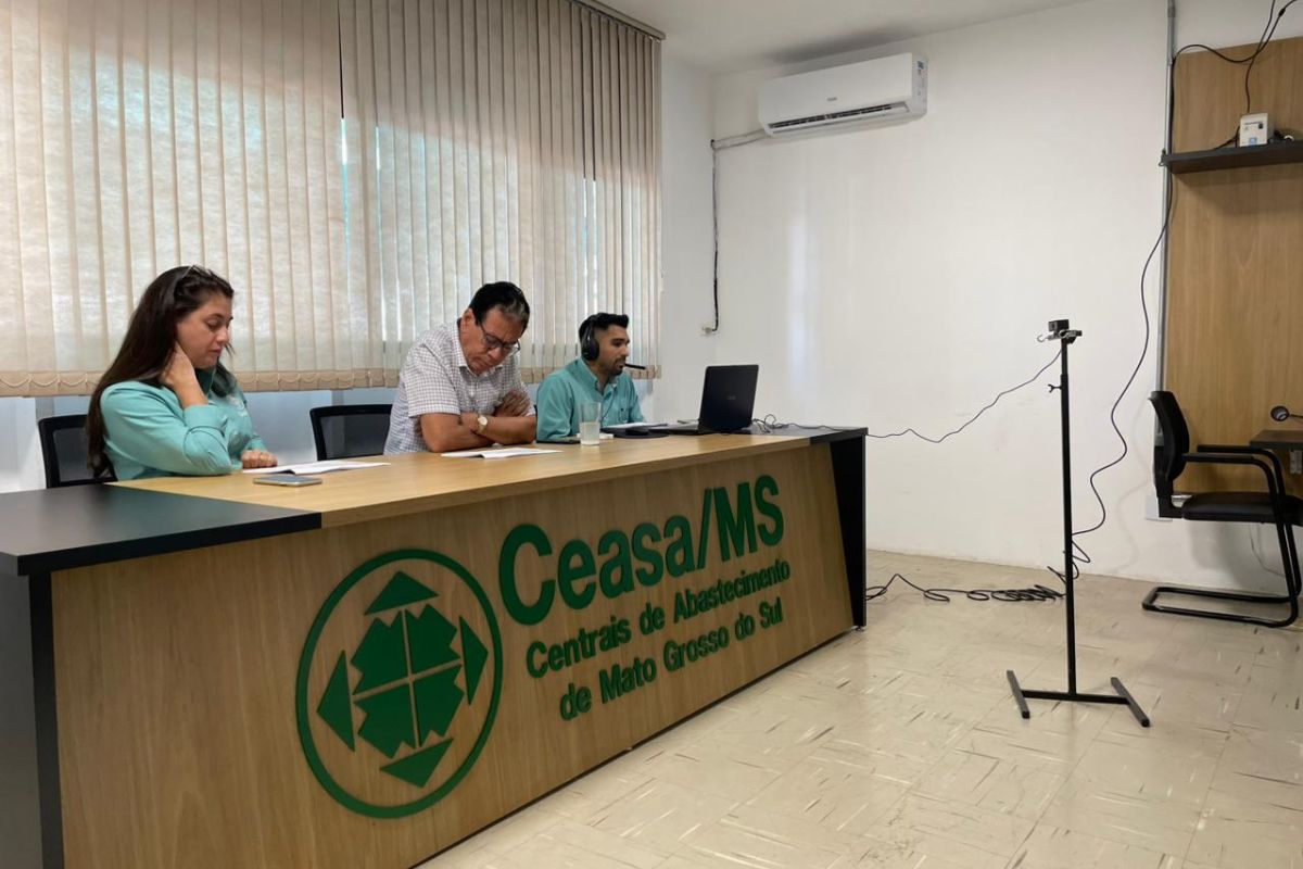 O diretor-presidente da CEASA/MS, Daniel Mamédio, a diretora de Orçamento e Finanças, Rizeli Cafuri Quevedo Breda, e o analista administrativo, Rodrigo de Oliveira Xavier, apresentaram, nesta quinta-feira (18), o trabalho de conclusão do curso, que teve como foco a aplicação prática dos conhecimentos adquiridos ao longo da formação.