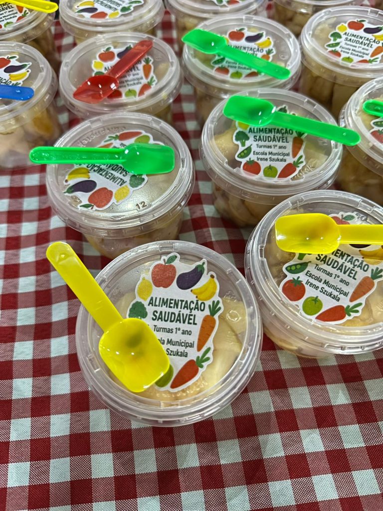 Os professores das turmas do 1º ano do Ensino Fundamental da Escola Municipal Irene Szukala elaboraram atividades que incluíram o estudo de alimentos ricos em nutrientes, degustações de frutas, o plantio de hortaliças e a elaboração de receitas saudáveis. O objetivo foi conscientizar as crianças sobre a importância de boas escolhas alimentares e da valorização dos alimentos in natura.