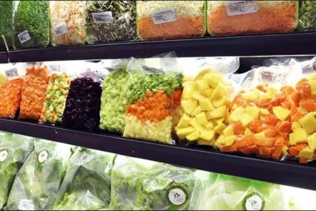 - Hortaliças e frutas fracionadas e embaladas;