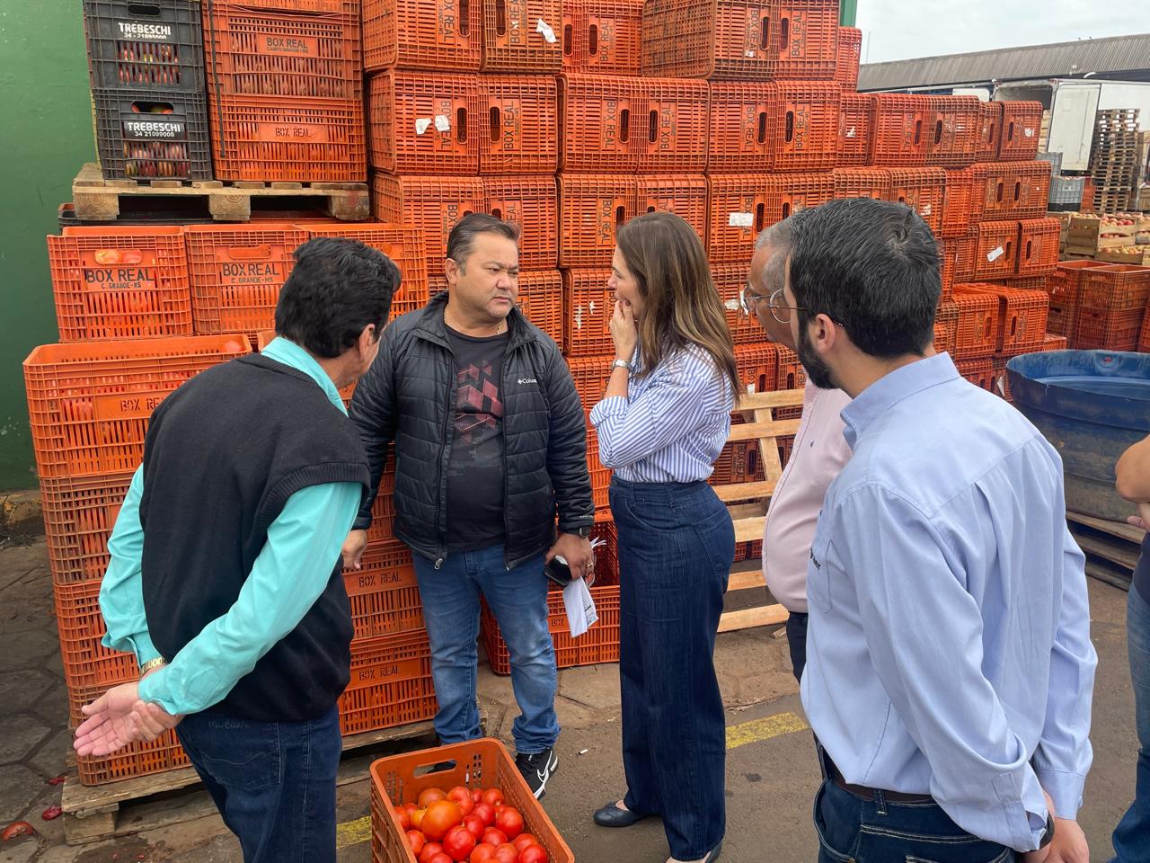 Na sequência, a primeira-dama e o secretário percorreram o complexo das Centrais e conversaram com empresários para compreender o volume expressivo de alimentos que deixam de ser comercializados diariamente por questões meramente estéticas, embora ainda estejam próprios para o consumo.